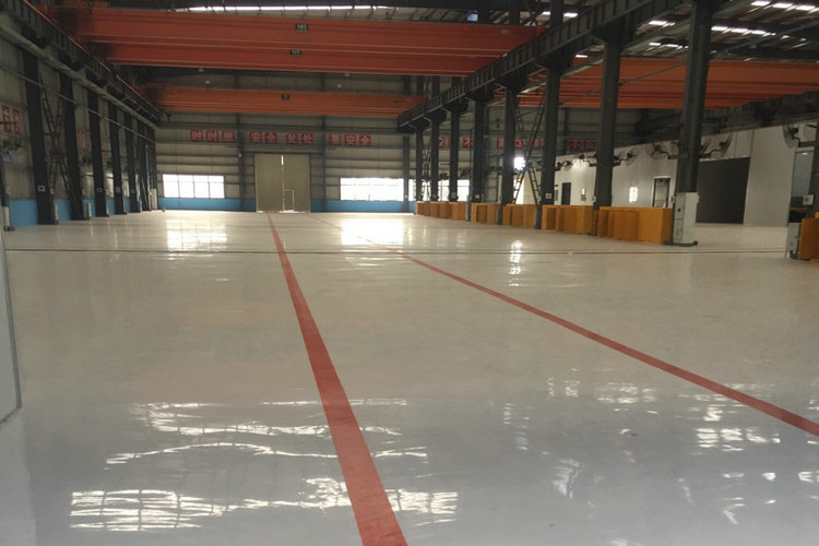 6、衛(wèi)生。許多現(xiàn)代工業(yè)如:醫(yī)藥,化妝品,食品,飲料,化學和電子業(yè),都有相同的衛(wèi)生要求。這些工業(yè)的制造過程都要求類似“潔凈室”的工作環(huán)境,如:地面必須完全無塵,沒有裂縫和直角轉(zhuǎn)角,容易清洗;并能滿足其他各項要求,如:抗化學品腐蝕能力和抗械磨損能力。 7、不滲透。當今的環(huán)境要求地面涂層必須抗?jié)B透,以保護混凝土和地下水免受滴漏的水和污染物的影響。有時不滲透的地面不僅僅用于防止具有化學腐蝕性的液態(tài)污染物的浸透,如:金屬加工業(yè),鍍鋅,食品加工業(yè)(奶制品,肉類,蔬菜);而且,人們在做保潔時也會接觸一些化學品,如:清洗劑等,這些環(huán)節(jié)也會有污染物浸透的可能。 8、跨接裂縫的能力。這與結構負荷有關,特別是動態(tài)荷載。工廠內(nèi)的振動和通行磨損對地坪有什么影響?避免出現(xiàn)裂紋的重要性有多大?在項目的某些特定區(qū)域,例如在室外停車場,在有腐蝕性液體的生產(chǎn)區(qū)域或者在“潔凈室”區(qū),地坪完成面必須具有動態(tài)的裂縫跨接能力,或者應力縫或活動縫,以防止隨后的開裂。 9、撞擊噪音的阻尼。工業(yè)環(huán)氧地坪經(jīng)常被用在大廳、走廊、展覽室和銷售區(qū),但這里的標準同傳統(tǒng)的環(huán)氧樹脂工業(yè)地坪頗有些不同。和承受高負荷的地坪不同,在辦公室、醫(yī)院等處的地坪表層有著相對不同的外部情況,通常對地坪的使用是人的行走或站立。因此,我們推薦使用柔性地坪系統(tǒng)。該系統(tǒng)須具有防滑和舒適的特點。 10、導熱性能。使用者判斷腳下地坪的冷暖是很主觀的。除了房間和地坪溫度之外,地坪的導熱性是最重要的因素。導熱率的值越低(0.5W/mk),感覺越明顯。除了這個指標外,色彩在主觀上的影響也不能低估(使用暖色調(diào)或冷色調(diào))。